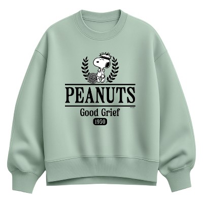 Peanuts - Woodstock Collegiate - Women's Oversized Fleece Crew Sweatshirt - From the best-loved comic strip in history comes officially licensed PEANUTS apparel for fans everywhere. Show your love for Charlie Brown, Snoopy, Woodstock, Lucy, Linus, Pigpen and the whole gang. Copyright Peanuts.