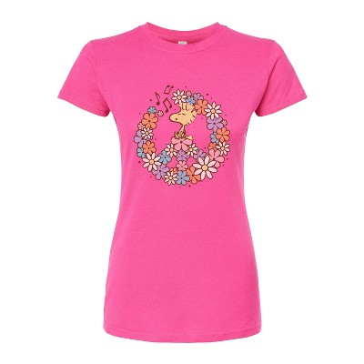 Women's Peanuts Woodstock Marshmallows Fitted Graphic T-Shirt - Fuchsia - X-Large