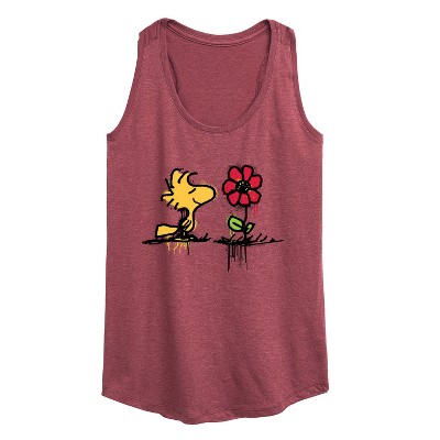 Women's Peanuts Woodstock Shamrock Graphic Racerback Tank - Heather Burgundy - 2 X-Large