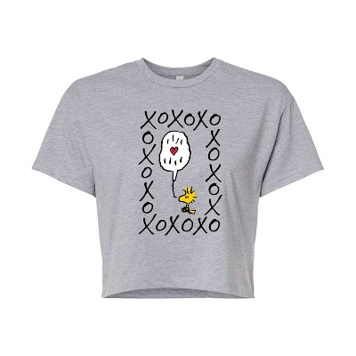 Women's Peanuts Woodstock True Love Cropped Graphic T-Shirt - Heather Grey - Small