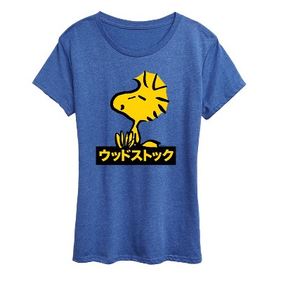 Women's Peanuts Woodstock With Flower And Pattern Short Sleeve Graphic T-Shirt - Heather Royal Blue - Medium
