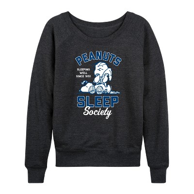 Women's Peanuts You Had Me At Ice Cream Lightweight French Terry Wide Neck Long Sleeve Graphic Shirt - Heather Charcoal - Large