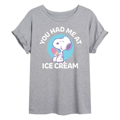 Peanuts - You Had Me At Ice Cream - Women's Oversized T-Shirt - From the best-loved comic strip in history comes officially licensed PEANUTS apparel for fans everywhere. Show your love for Charlie Brown, Snoopy, Woodstock, Lucy, Linus, Pigpen and the whole gang. Copyright Peanuts.