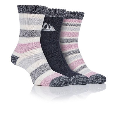 The Storm Valley® range of socks has been created to bring our decades of hosiery knowledge and expertise to the world of outdoor essentials, producing a range of functional, technical and innovative products that provide both comfort and style whether tackling the hills or main street.The Women's Performance Polyester Stripe Boot Sock is a comfortable quick-drying striped design, featuring luxury terry cushioning, and arch supports; perfect for light hiking and urban use.Equivalent men's style also available.