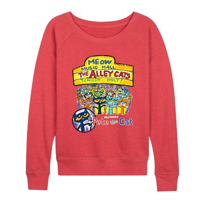Women's Pete the Cat Create Your Own Sunshine Lightweight French Terry Wide Neck Long Sleeve Graphic Shirt - Heather Red - Medium