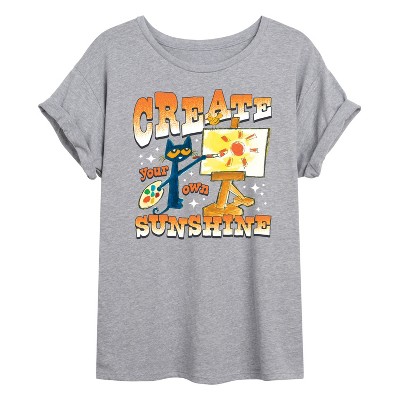 - Officially Licensed Pete The Cat apparel for the whole family. Garments offered range from long sleeve and relaxed fit t-shirts, to lightweight french-terry sweatshirts and graphic print pullovers. We offer our products in a variety of styles and sizes. Our products feature fun and trendy graphics that are perfect for any occasion and also make great gifts.
