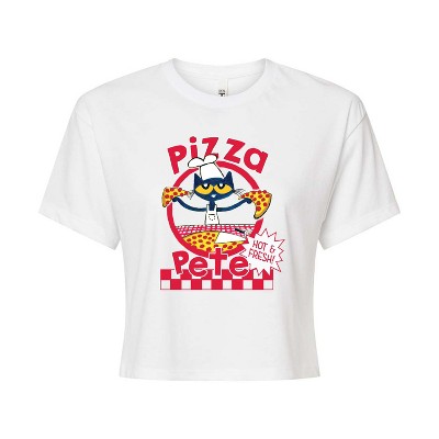 Women's Pete the Cat Leave No Trace Camping Cropped Graphic T-Shirt - White - Large