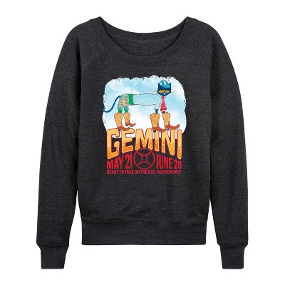 Women's Pete the Cat Taurus Lightweight French Terry Wide Neck Long Sleeve Graphic Shirt - Heather Charcoal - Small