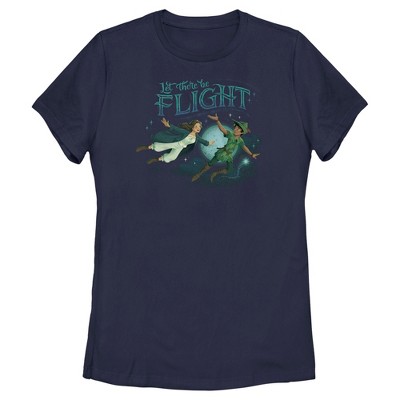 Disney - Peter Pan - Flight School - Fly Away to Adventure - Women's Short Sleeve Graphic T-Shirt - Take flight to Neverland with Peter Pan graphic apparel—featuring Peter, Wendy, Tinker Bell, and the Lost Boys in whimsical, nostalgic designs.