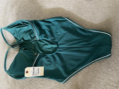 • Green piping one-piece swimsuit