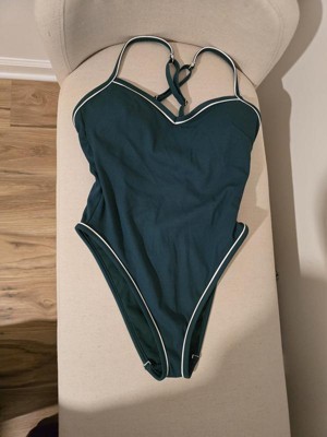 Women's Piping High Leg Extra Cheeky One Piece Swimsuit - Shade & Shore™ Green XS