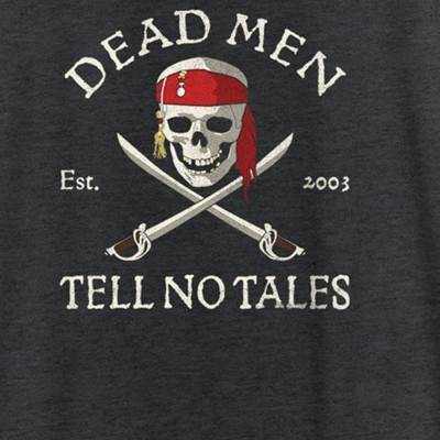 Ahoy! Join the ever-charismatic Captain Jack Sparrow in the first of the blockbuster Pirates of the Caribbean franchise, as he pursues the undead pirates who've kidnaped the governor's daughter in Pirates of the Caribbean: The Curse of the Black Pearl! This Women's Dead Men Tell No Tales Graphic Racerback Tank Top features the classic skull logo printed across the center surrounded by the text "Dead Men Tell No Tales" and "Est. 2003." Grab some new Pirates of the Caribbean apparel today and get ready for a swashbuckling good time!