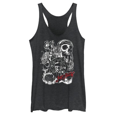 Ahoy! Join the ever-charismatic Captain Jack Sparrow in the first of the blockbuster Pirates of the Caribbean franchise, as he pursues the undead pirates who've kidnaped the governor's daughter in Pirates of the Caribbean: The Curse of the Black Pearl! This Women's Jack Sparrow Hello My Lovelies Graphic T-Shirt features a black-and-white graphic of Jack Sparrow alongside his name and the phrase "Hello My Lovelies" in red lettering. Grab some new Pirates of the Caribbean apparel today and get ready for a swashbuckling good time!