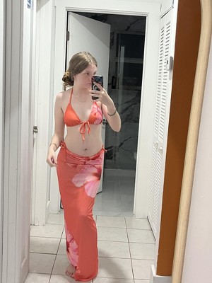 Women's Placed Hibiscus Floral Print Center Tie Triangle Bikini Top - Wild Fable™ Coral - 2 of 4Women's Placed Hibiscus Floral Print Center Tie Triangle Bikini Top - Wild Fable™ Coral - 3 of 4Women's Placed Hibiscus Floral Print Center Tie Triangle Bikini Top - Wild Fable™ Coral - 4 of 4