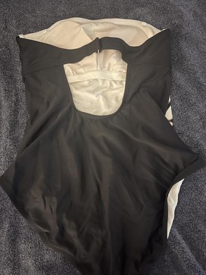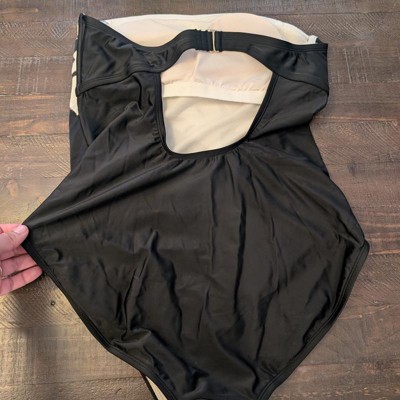 Black and white strapless option one piece swim