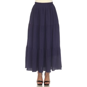 Product Name: Women's Pleated Tiered Maxi Skirt Navy Medium -White Mark
