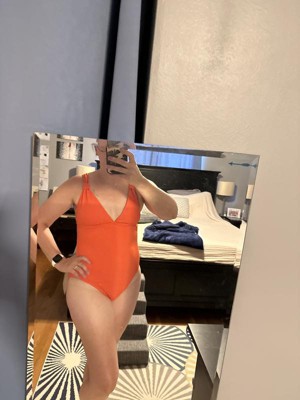 Women's Pucker Plunge Neck Full Coverage One Piece Swimsuit - Shade & Shore™ Orange