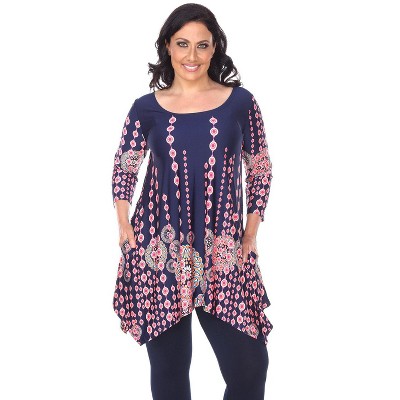 Product Name: Women's Plus Size 3/4 Sleeve Printed Rella Tunic Top with Pockets Navy 3X - White Mark