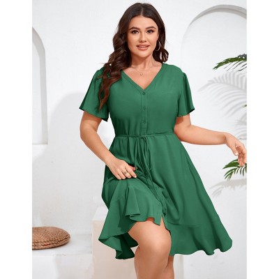 Women's Plus Size Dress Short Sleeve A-Line Swing V Neck Flowy Casual Dresses - 2 of 4Women's Plus Size Dress Short Sleeve A-Line Swing V Neck Flowy Casual Dresses - 3 of 4Women's Plus Size Dress Short Sleeve A-Line Swing V Neck Flowy Casual Dresses - 4 of 4