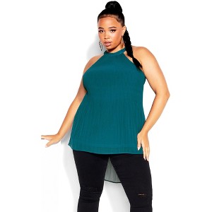 Women's Plus Size Halter Pleat Top - teal | CITY CHIC - 1 of 4