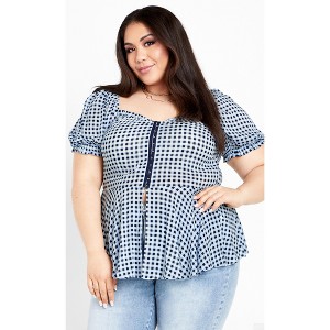 Women's Plus Size Isobel Top - navy check | CITY CHIC - 1 of 4