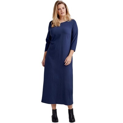Product Name: Women's Plus Size Long Sleeve Maxi Dress Blue 2X - White Mark