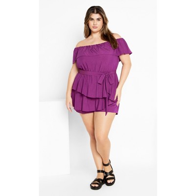 • Model wears a City Chic size XS/14 and is 167 cm in height. Bust: Relaxed fit. Waist: Fitted. Hips: Close fit. Length: This plus size playsuit is mini length. Centre back measurement: 97 cm/38 inches. Inseam measurement: 11 cm/4 inches.