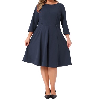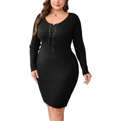 Women's Plus Size Square-Neck Dress Long Sleeve Stretchy Comfy Casual Dress