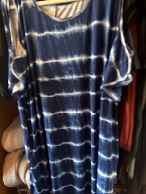 Women's Plus Size Tie Dye Crew Neck Off Shoulder T-Shirt Dresses with Pockets - Agnes Orinda 1X Blue