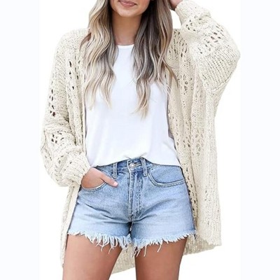 - Tie front lantern sleeve cable knit cardigan sweater for women