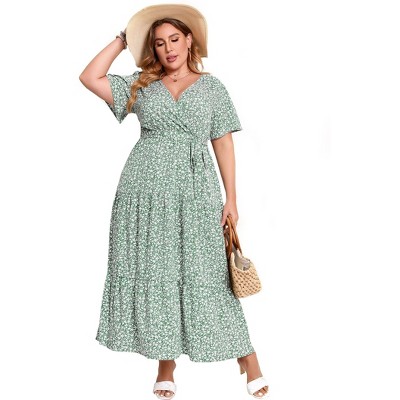 Women's Plus Size V-Neck Maxi Dress: Flowy Boho Elegance for Vacations & Garden Soirees Dress - 1 of 4
