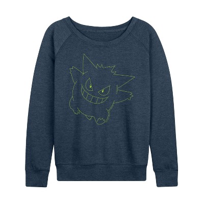 Women's Pokémon Battle Mode Lightweight French Terry Wide Neck Long Sleeve Graphic Shirt - Heather Indigo - Large