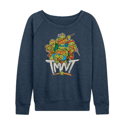 Women's Pokémon Bulba Flowers Lightweight French Terry Wide Neck Long Sleeve Graphic Shirt - Heather Indigo - Medium