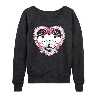 Women's Pokémon Maushold 4 Coquette Lightweight French Terry Wide Neck Long Sleeve Graphic Shirt - Heather Charcoal - X-Large