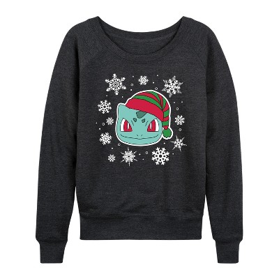 Women's Pokémon Mewtwo Mew Celestial Lightweight French Terry Wide Neck Long Sleeve Graphic Shirt - Heather Charcoal - Medium