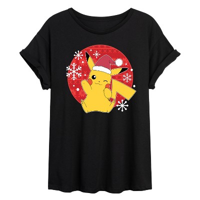 Women's Pokémon Pikachu Santa Hat Ugly Sweater Short Sleeve Graphic T-Shirt - Black - Medium