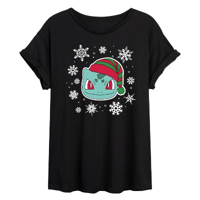 Women's Pokémon Squirtle And Snowflakes Short Sleeve Graphic T-Shirt - Black - Large
