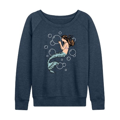 Women's Pokémon Tatsugiri Bubbles Lightweight French Terry Wide Neck Long Sleeve Graphic Shirt - Heather Indigo - X-Large