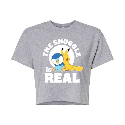 Women's Pokémon The Snuggle Pikachu Cropped Graphic T-Shirt - Heather Grey - Large