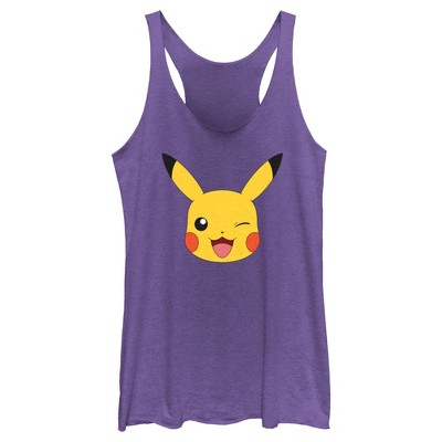 Women's Pokemon Bulbasaur Wink Face Racerback Tank Top - Purple Heather - X Large