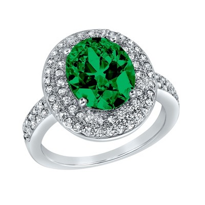 Women's Polished Crystal Stones Gold Plated Stainless Steel Ring Green 8
