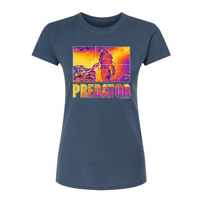 Women's Predator Thermal Vision Lightweight French Terry Wide Neck Long Sleeve Graphic Shirt - Heather Indigo - Large