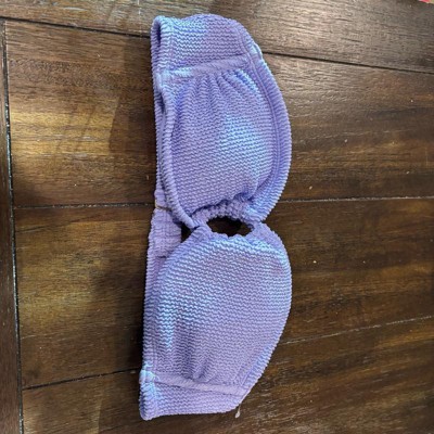 [This review was collected as part of a promotion.] We purchased this in a size small for my 12 year-old daughter who typically wears a size 8 cup and overall this Bando top that are perfectly the cups are removable which we definitely did to make this seem more comfortable and we really like that. It also came with straps that you easily put on when she’s being active on the beach or in the pool . The color is so pretty. It’ll look great paired with the matching bottoms or a pair of lavender or white bottoms for a complete look.