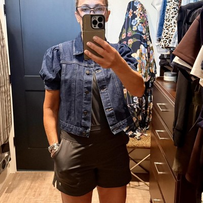 Give your classic wardrobe staple a much-needed makeover with this chic puff sleeve denim jacket. * Short puff sleeves * Turn down collar * Functional buttons down the placket * 85% Cotton, 10% Polyester, 5% Viscose. Imported. * Machine washable