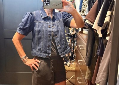 This jacket is so cute! Made well, real denim fabric, not much stretch. I got the 10 thinking I would want to size up to wear over my tops, but ended up going with the 8 for a closer fit.