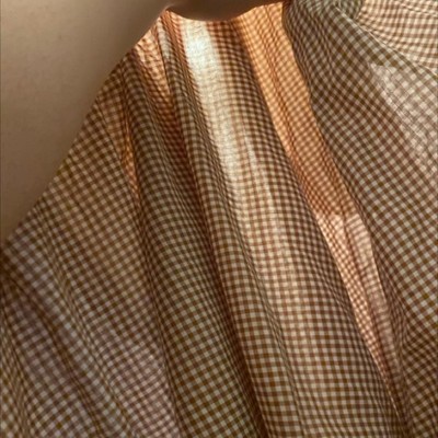 It's a very thin lightweight Summer skirt. I love the length and the brown gingham. Also it has pockets, which is great. HOWEVER, it has a large, tacky side slit which is not mentioned in the description or shown in the photos. With such a semi sheer, thin material the side slit adds nothing and really cheapens the look of the whole skirt. I will stitch it closed. Also it's unlined... I will wear a cotton slip under it. IF target had made this skirt in 100% cotton with a lining it would have been a home run. Yes, it would have cost a bit more. It would have been worth it. I have the brown gingham, size M. Flat measurements are: waist: 15" length 32"