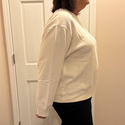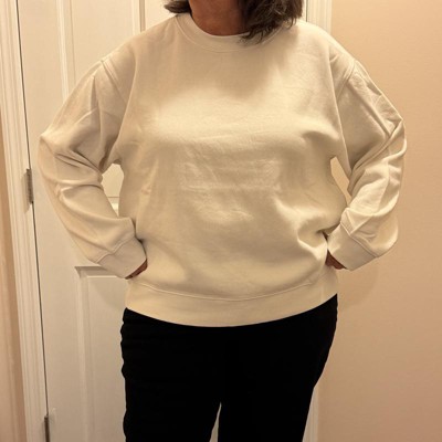 From running errands to lazy days at home, take on your day in cozy style with this Sweatshirt from Universal Thread™. Made from cotton-, recycled polyester- and recycled cotton-blend fleece fabric, this crewneck sweatshirt wraps you in cozy comfort. Tailored in a loose-fit silhouette, it's designed with ribbed detailing on the cuffs and hem for a snug fit. Pair this solid-hued sweatshirt with jeans, shorts or joggers for laid-back style.