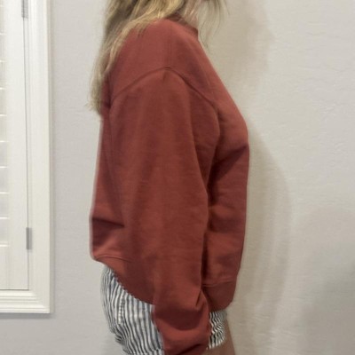 Love the fit and color (rust) of this sweatshirt! It’s so cozy soft on the inside. And love that it’s mostly cotton!