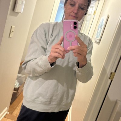 [This review was collected as part of a promotion.] I love the relaxed fit of this nice crew neck. Light greens are my jam so this is a perfect addition to my wardrobe. The inside is soft and this will definitely be perfect for throwing on during those chilly summer nights or crisp autumn days. I like how it’s blank but thinking of different things I might want to print on it with my vinyl cutter. Definitely looking forward to snuggling up in this sweatshirt. I am a size 6-8 and usually wear a size medium and I liked how this medium fit me. I think it was true to size. I received an incentive to write this review.