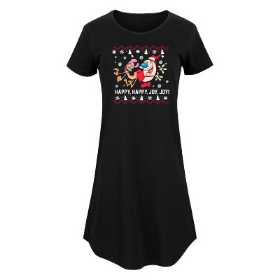 Women's - Ren & Stimpy - Friendly Laughter Graphic T-shirt Dress - 1 of 4